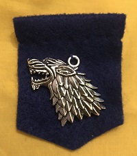 Blazon: Vert, a seven-headed hydra Or entwining a sword inverted Argent